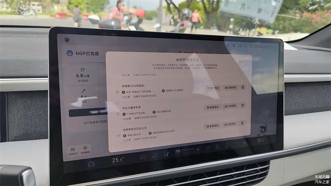 另外,根据系统的智驾能力,小鹏也设计出了很多独具特色的功能。譬如这个“AI代驾”,类似于所谓的“记忆泊车”功能,可以将最近行驶过的路线,通过一次手动驾驶,让系统进行“学习”之后,自此就可以在智驾系统的帮助之下,自动完成这条路线的“代驾”。由于拥有对路况的提前“学习”,因此“AI代驾”能够做到基于NGP的能力基础之上更低的系统接管概率,使用起来更加流畅。