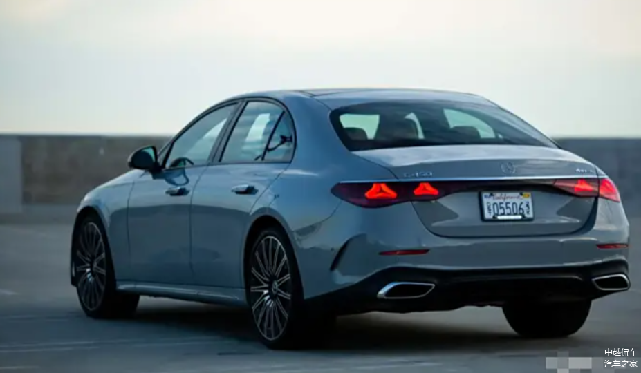 由于 E450 采用标准轴版,尺寸不如国内奔驰 E 突出,却更符合运动车型特点。新奔驰 E 在标轴设计上融合前沿理念,保持腰线特色,车头至车尾采用创新设计,窄轮眉凸显运动属性。尾段的内嵌式三角形尾灯与标准版本相同,下方设计也和常规奔驰 E 一致。