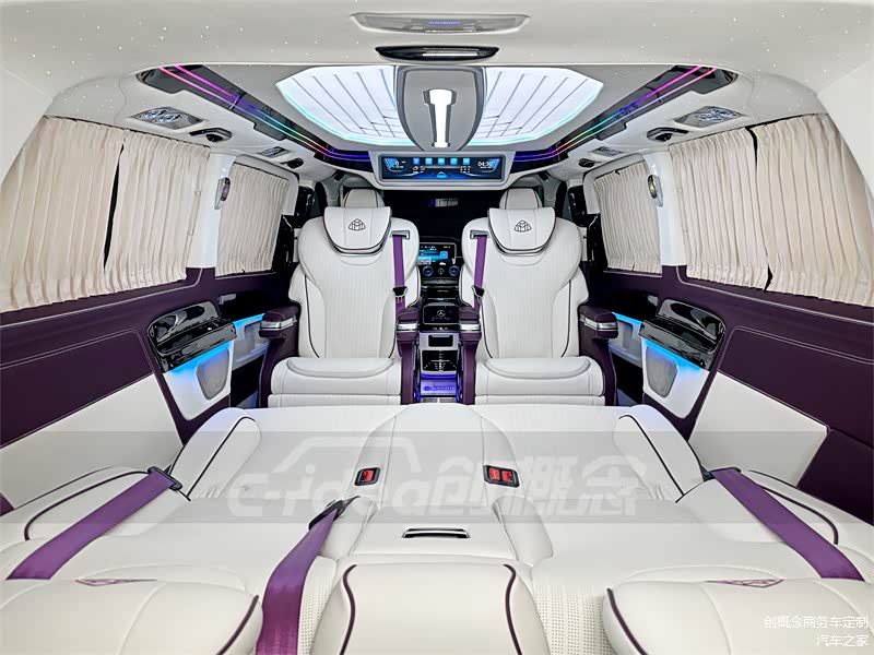 奔驰威霆作为一款商务车,有着空间大,性价比高的优点,所以有很多人喜欢买来进行个性化定制。而今天小编就为大家带来一款奔驰威霆个性化七座紫白双拼色内饰改装案例,一起来看看效果吧。