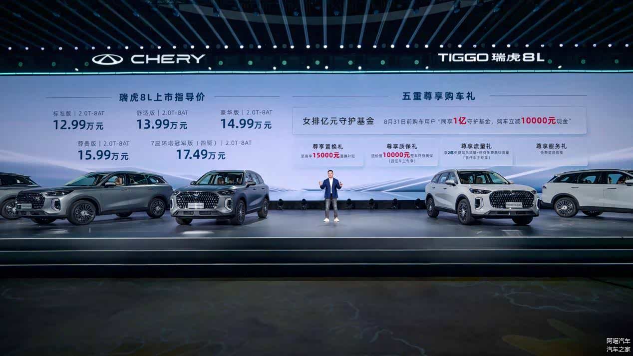 奇瑞瑞虎8家族又新添一位新成员。8月8日瑞虎8L正式上市,新车售价区间为12.99万元-17.49万元,共有5款车型供消费者选择。如果你现在买车,瑞虎8L还可以再减1万元,只要在8月31日前下单即可,相当于11.99万元起售了。然后再看看瑞虎8L这款车,定位中型SUV,全系配备2.0T发动机和8AT变速箱,这个10万出头的价格,性价比还是很高的。
