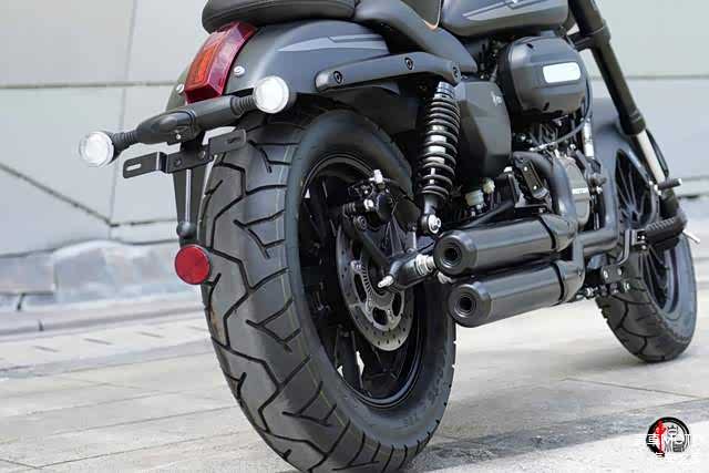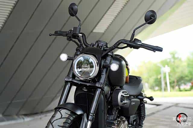全车灯光系统依旧采用全LED光源,不同之处在于灯组结构经过了重新优化,头灯采用圆形复古设计,镀铬包边并辅以黑色小风挡作为装饰。内置带有透镜的LED光源以及LED日行灯,整体质感有所提升。尾灯设计也与现款车型有所不同,采用了与闪300相似的竖型布局,视觉效果更加醒目。仪表采用LCD液晶显示,提供了转速、里程、时速、时间、剩余油量、功能指示灯等各项数据,内容清晰简洁。