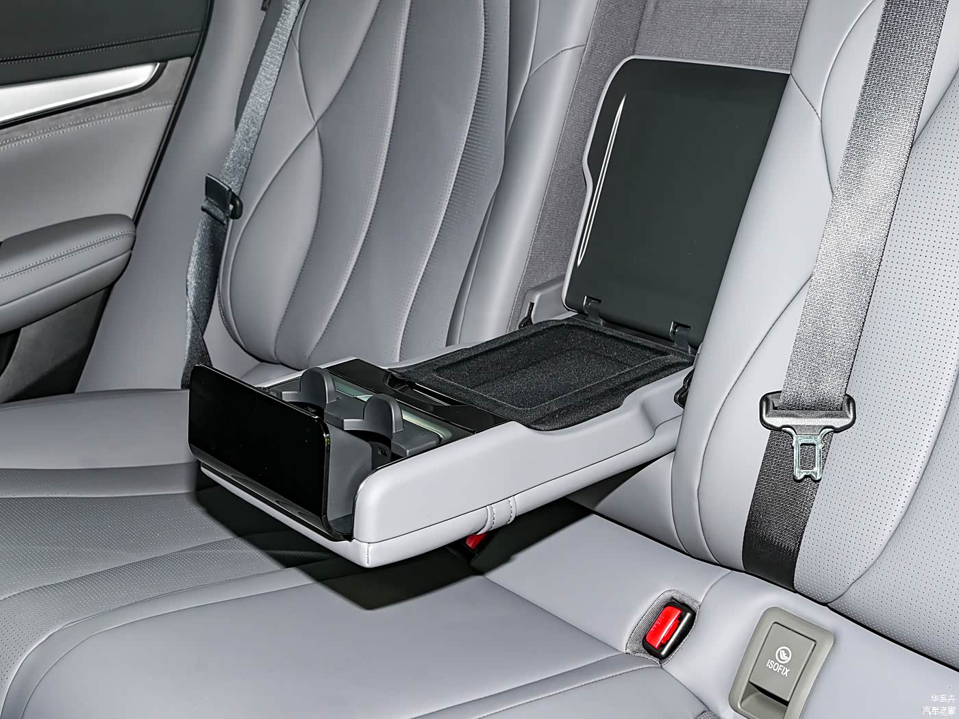 后排中央扶手设计的比较巧妙,兼顾了置物和放置水杯等操作。