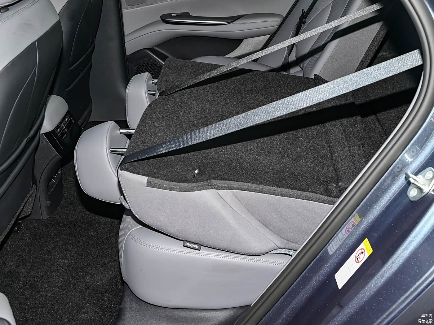 后排座椅可以比例放倒,安全带是和车架固定的,载物会有一点不方便。