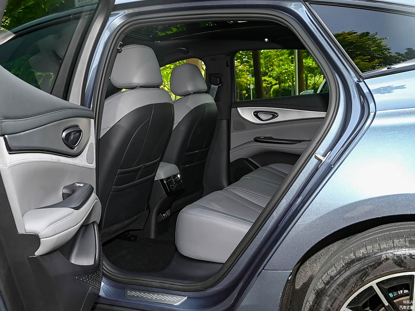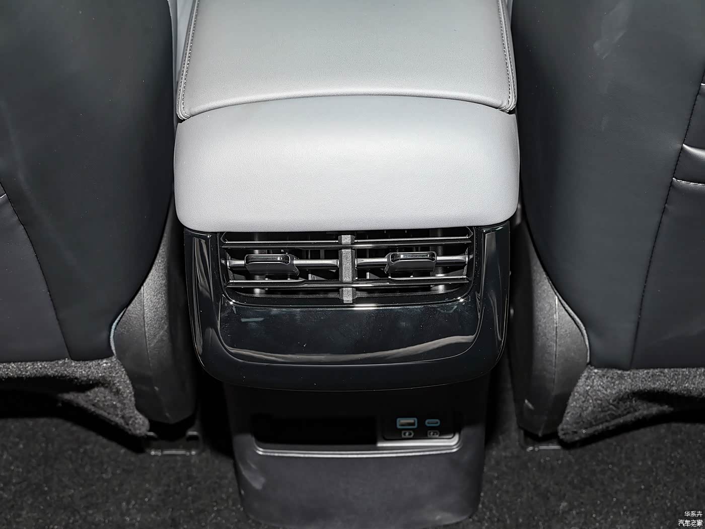 后排空调出风口支持风向调节,带有电源接口,能满足基本需求。