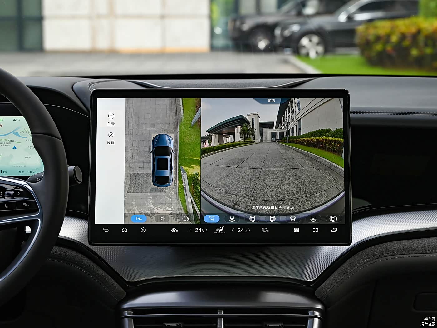 全景影像显示范围很全面,也没有浪费屏幕尺寸,全系支持遥控泊车,实用性不错。