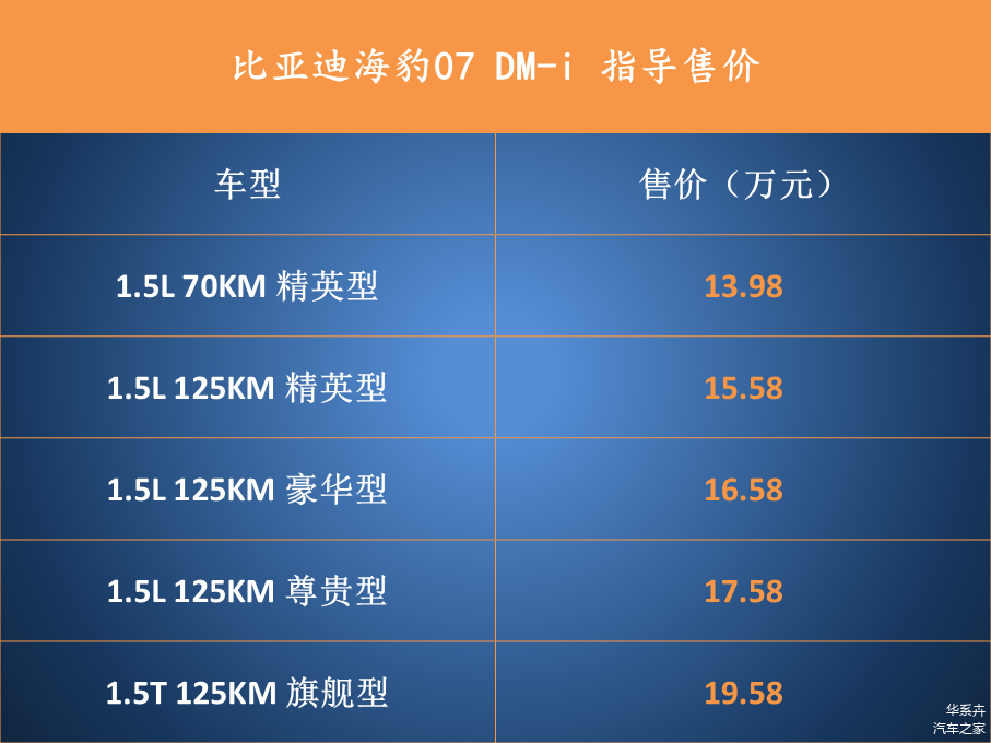 比亚迪海豹07 DM-i还是非常不错的,售价比较实惠,纵然最低配也配置齐全,当做燃油车来使用也不错;主力配置是125km纯电续航,实用性也不差;要节能选1.5L车型,要动力选1.5T车型;底盘悬架也丝毫不差,作为家用车还是不错的。