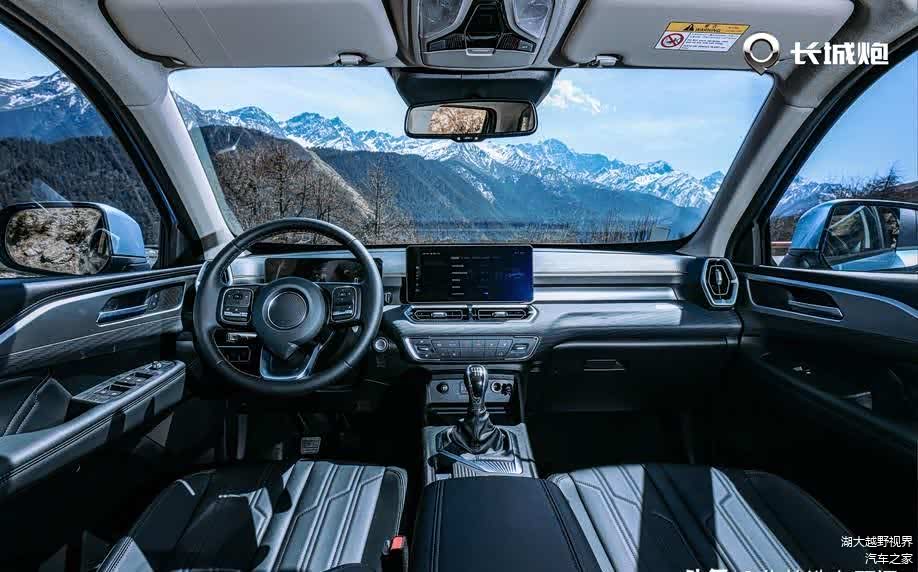 内饰中,方向盘中间没有Logo需要适应一下,不过整体内饰氛围看起来并不粗糙,乘用化的内饰风格是长城炮皮卡一直都做的不错的。金刚炮提供灰红、黑灰两种撞色和纯黑单色内饰风格,全液晶仪表和悬浮式中控屏组合显示丰富的信息,中控台中央仍然有不少物理按键,实用性得以保证。