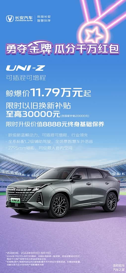 作为新蓝鲸动力平台的首搭车型,UNI-Z以其可插混可增程,全系标配的L2级辅助驾驶、全场景智慧车外语音以及同级最大的套内空间等亮点,赢得了市场的广泛认可。鲸爆价11.79万元起限时以旧换新补贴,全高30000元(含国家补贴20000元),限时升级价值8888元终身基础保养。