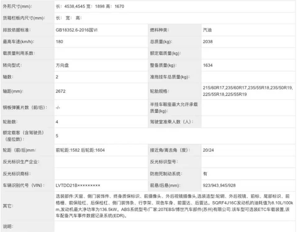 动力部分,新款车型将搭载代号为SQRF4J20的2.0T涡轮增压发动机,最大功率为187千瓦(254马力),最大扭矩为390牛米,传动系统预计为8挡手自一体变速箱,具体参数和信息,还以官方正式公布为准。