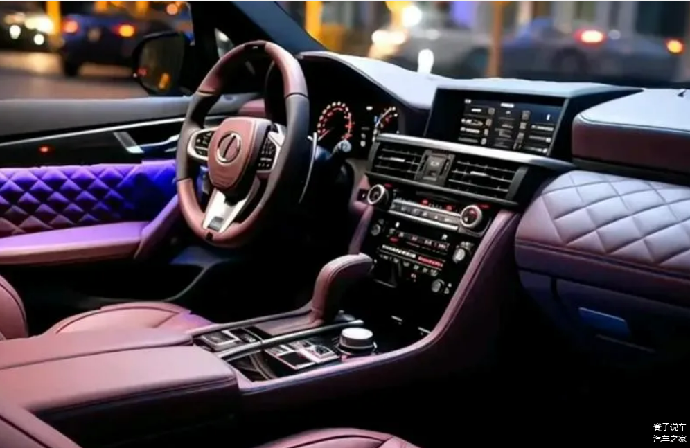 此外由于尺寸较大,所以它的前保险杠和后地板部分还做了一定程度的改动,整体外观显得非常大气。此外,为了增强车辆的高级感,例如在车门的内衬和副驾驶的前侧,都融入了大量的打格设计元素。特别是加入了紫色调的装饰,使得其奢华感与LX600相媲美,甚至在奢华程度上超过了后者。