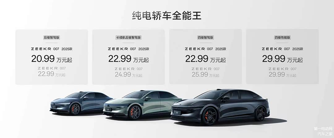 一个升级入门款,一个升级中高配,2025款极氪001、007在改款方面可谓形成一个巧合的“改款闭环”。只能说,早买早享受,晚买享折扣。