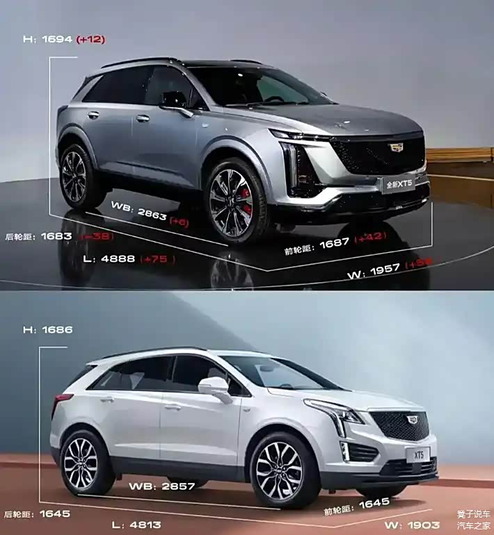 全新的XT5在车辆规格上相对于现有版本有了明显的优化和提升,具体来说,其长度、宽度和高度分别达到了4888mm、1957mm和1694mm,轴距也有2863mm。在车宽上,它增长了54mm,达到了与同级车型中同样宽度的标准,几乎接近了大规模豪华SUV车型。通过增加前后轮的间隔,我们扩大了1687/1683mm,这不仅进一步提升了车辆的行驶稳定性,还增加了车辆内部的横向空间。在底盘技术中,全新的XT5得到了一系列的完善,它的地面间距扩展到了14mm,得益于最新版本的蜂鸟底盘,它能够更好地应对各种路况。