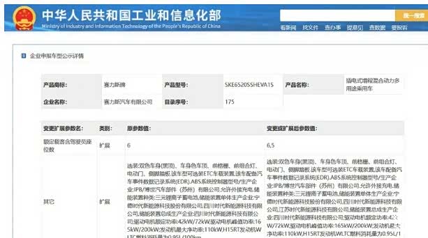 根据问界M9的参数信息来看,新车的定位大型SUV,均为5门6座SUV,分为增程和纯电两款车型,而在今年的 3月13日,工信部发布了第381批《道路机动车辆生产企业及产品公告》变更扩展公示,我们已经发现了赛力斯对旗下的某款车型的额定载客数量进行扩展的信息,由原来的“6座”变更为“5座和6座”。而不少媒体已经确认了这款车型就是问界M9。