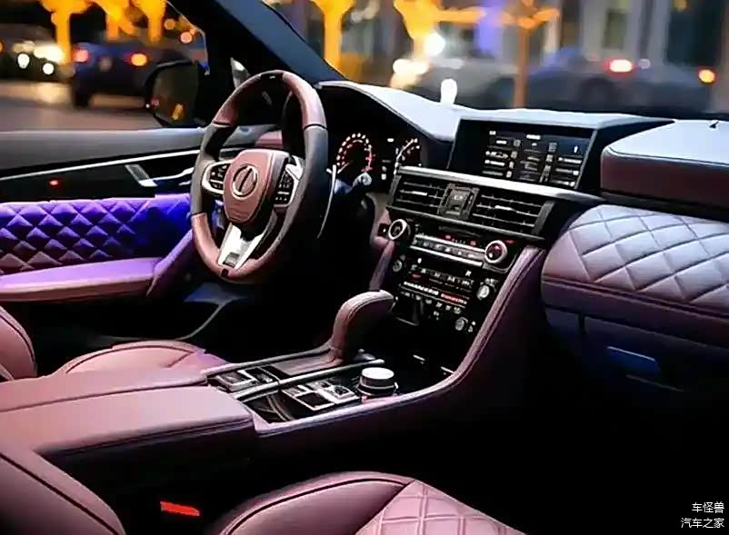 在结构设计上,这款新车采用了阶梯式的布局设计,特别是从中部延伸到副驾驶区域时,这种设计显得尤为醒目。这款车的整体设计采用了双色调的颜料,从而呈现出一种非常高端的视觉效果。仪表盘采用了液晶显示屏与机械盘的组合展示方式,而中央的多媒体显示屏则被设计成了长方形,这种独特的方形设计完美地呈现了570号的经典设计元素之美。在其下面的部分,传统的功能按键占据了主导,而档杆的设计也严格遵循了经典的设计理念。为了让车辆展现出更高的档次,我们在车门的内部衬里以及副驾驶的前部都增加了大量的打格设计元素,特别是加入了紫色的色彩,这种设计与LX600的奢华程度相当,某些细节上甚至显得更为奢侈。在动力性能方面,这款新车并没有采用与LX600相同的配置,而是选择继续使用我们熟悉的5.7LV8引擎,并配备了8速手自一体的电子控制自动变速器。