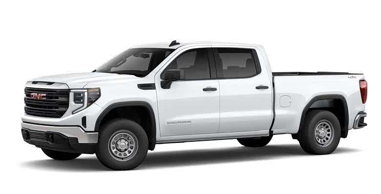 2024 GMC Sierra 1500 Pro 的其他标准配置包括 17 英寸银色钢制车轮、两个安装在前车架上的黑色垂直回收挂钩、六功能 GMC MultiPro 后挡板、遥控无钥匙进入、高清后视摄像头以及兼容 Apple CarPlay 和 Android Auto 的 7 英寸信息娱乐触摸屏。此外还有多种安全功能,例如自动紧急制动、车道辅助和前方碰撞警报。