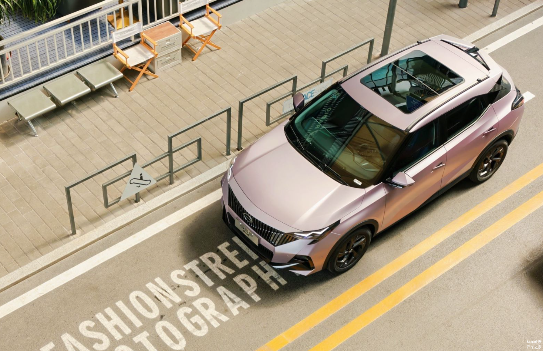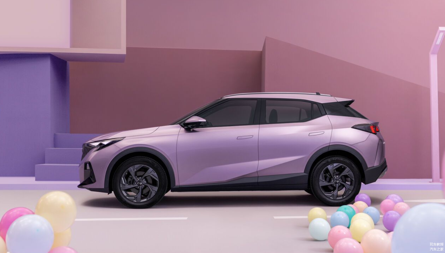 即便这车是一台小型SUV的定位,但较为低趴的造型给人感觉更小像一款跨界两厢车,从新车尺寸来看,其长宽高分别为 4410/1850/1600 毫米,轴距为2650毫米,也正是这个原因让新车成为广汽传祺家族中最小尺寸车型,所以基于这个定位搭配此次新增的“一份紫”,也将更符合年轻女性追求小车的感觉。