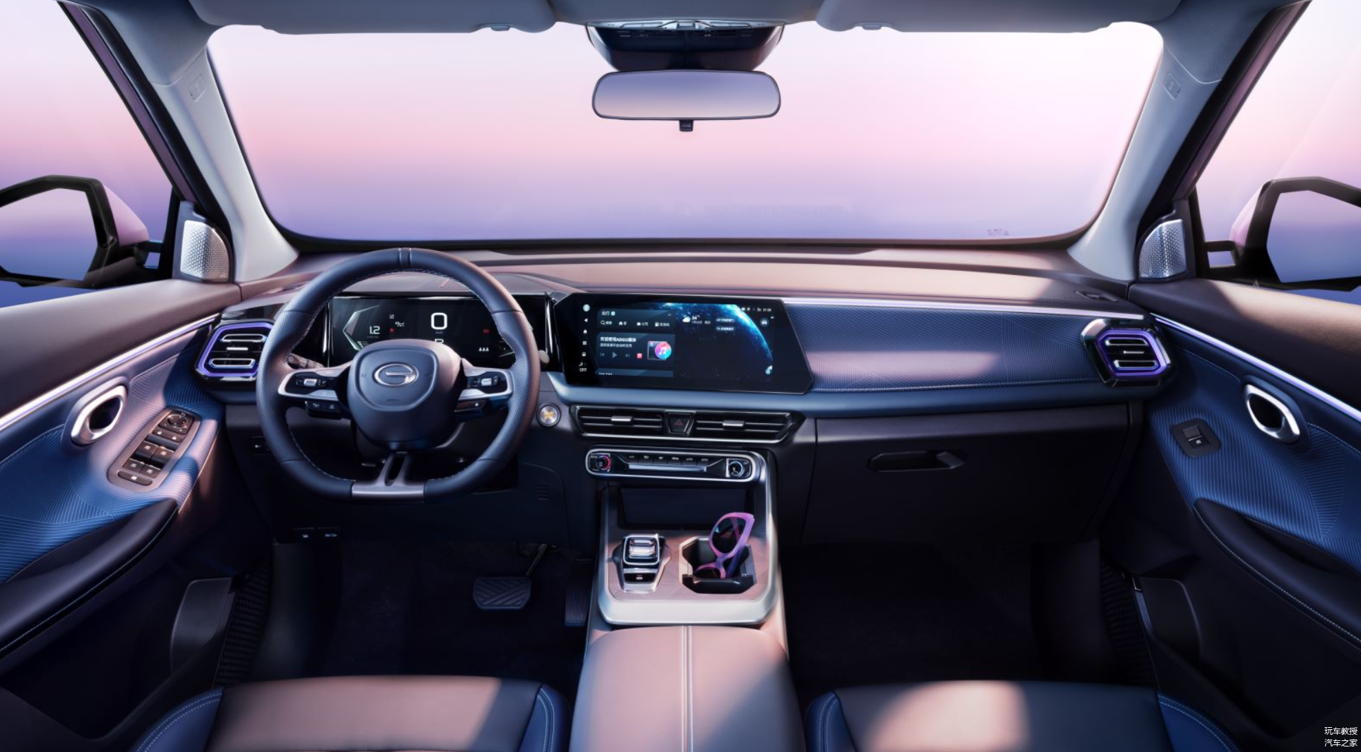 新车虽是一款入门级车型定位,但也延续了传祺E8、ES8等旗舰级车型的环抱式座舱,高位的中控扶手箱搭配水晶样式的电子挡把,虽说这次屏幕没有增大,但从12.3英寸的中控屏搭配全液晶仪表,也说明直接给予高配车型的配置。