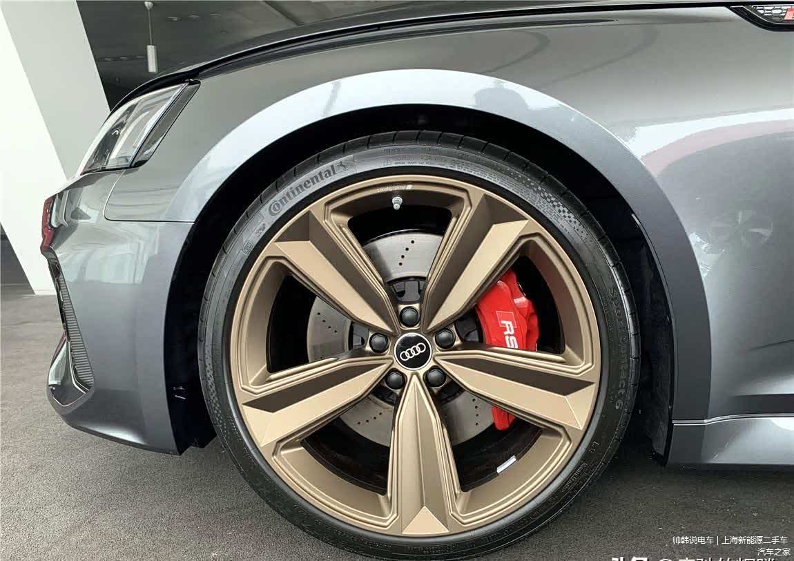 坦白地说,奥迪RS5四门掀背暗金版的这套车头设计,已经不足为奇,毕竟奥迪A系列,都有RS版本,换言之,RS车型的一些配置,早已下放到低端车型中,两侧为矩阵式LED大灯,点亮效果极佳,车尾选装了 RS运动排气系统16000元,口径非常粗大,后扰流板也进行了碳纤维装饰,车侧是德国马牌轮胎,内置红色的刹车卡钳。