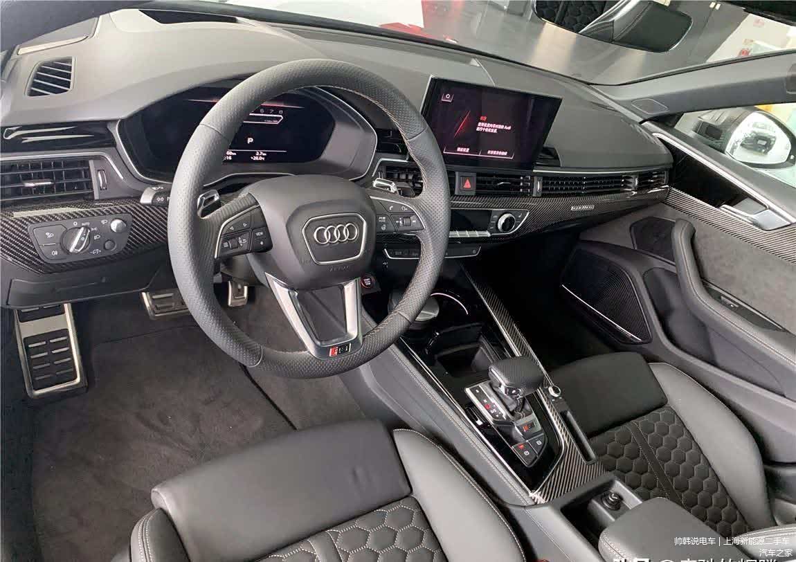 内饰方面,在普通A5的基础上,做工和用料进行了显著提升,诸如加入了ALCANTARA材质和翻毛皮材质,方向盘握感出色,转向精准,中控屏为10.1英寸,标配了14个喇叭的B&O音响,运动风格的座椅也支持选装ALCANTARA材质,表面做了菱形纹路,高级感油然而生,包裹性和舒适性得到进一步提升,方向盘,仪表盘等细节之处,随处可见RS专属标志,车门采用高档麂皮装饰。