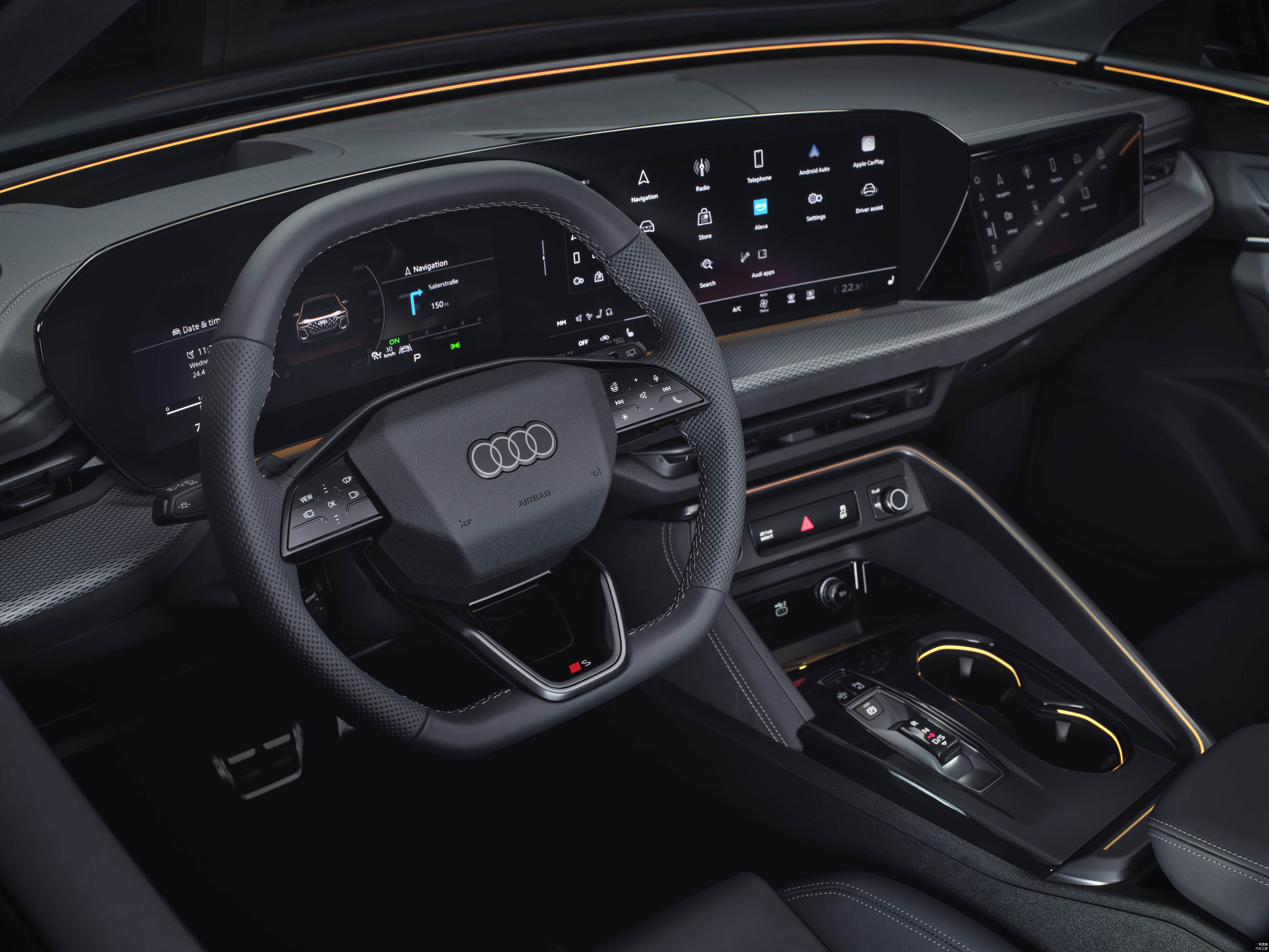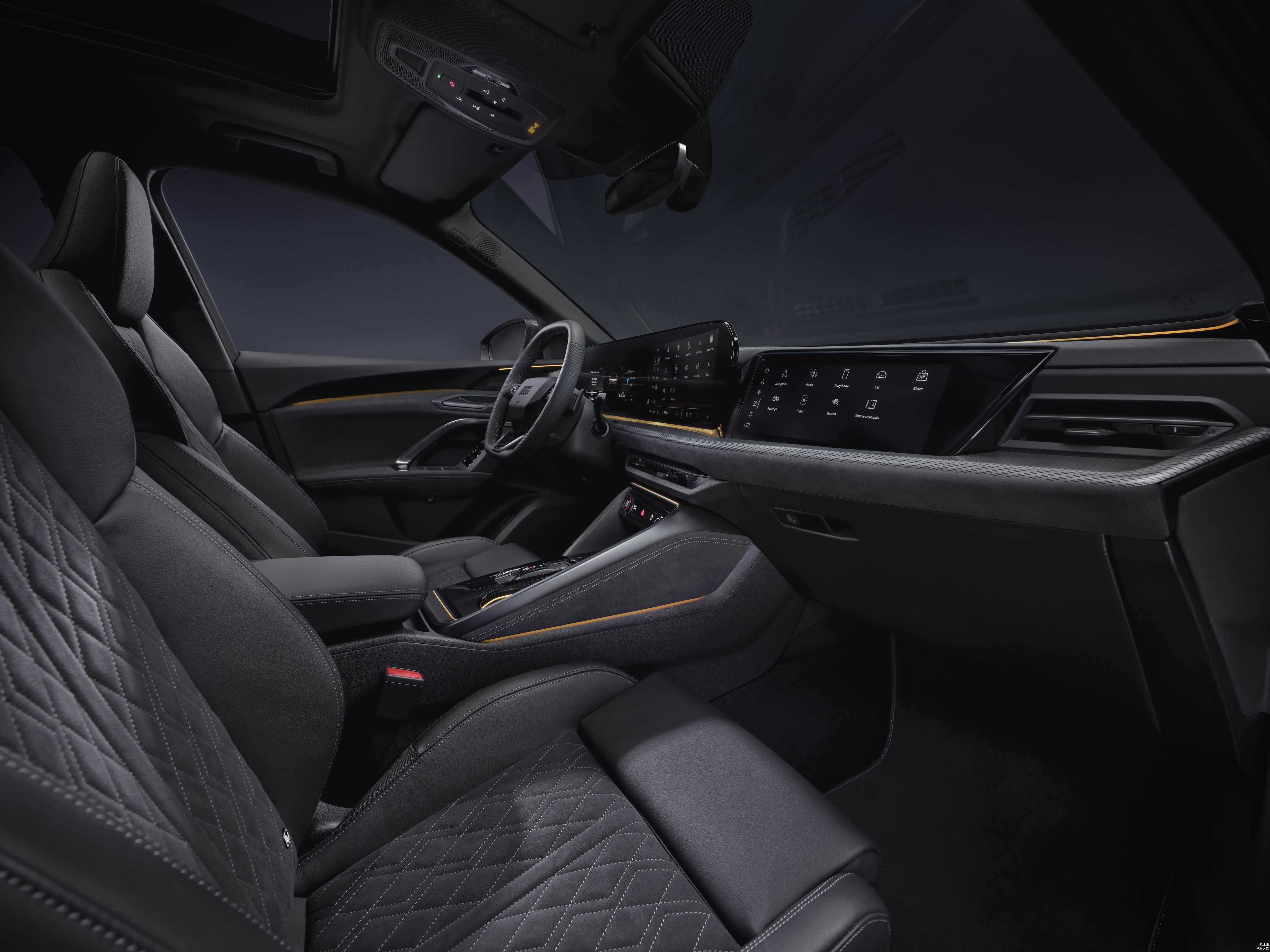 内饰方面:全新Q5也加入了“三屏”阵营,包括一个为驾驶员提供的11.9英寸仪表显示屏,一个14.5英寸的中控触摸屏,和可为副驾驶前方选装的10.9英寸娱乐屏幕,此外贯穿前门两侧和中控台前方的LED灯带不仅起到氛围灯的装饰效果,更可作为人机交互灯语,在导航提示转向,紧急避让等情况下通过不同的动态光及颜色提示驾驶者。中央扶手下方配有手机无线充电,两个前部 USB-C端口支持60 瓦功率高速充电,而后部的USB-C端口支持100瓦充电功率,可支持笔记本电脑等更大功率的用电设备,此外全新Q5的后排座椅支持整体前后调节,从而调节后排腿部空间和后行李箱容积,当然这项功能在未来后排加长的国产Q5L上能否保留暂时未知。