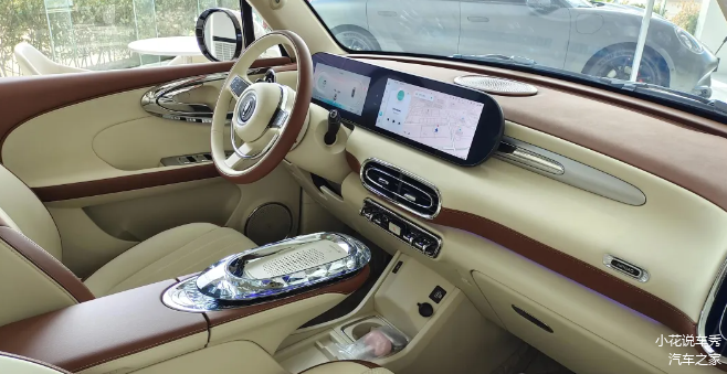 车内的双色内饰设计同样雅致时尚,搭配双联屏以及银色镀铬条点缀,营造出一种现代与复古交融的高级氛围。实用性方面,半悬浮中控台布局合理,无线充电面板、储物格等贴心设计满足日常使用需求。