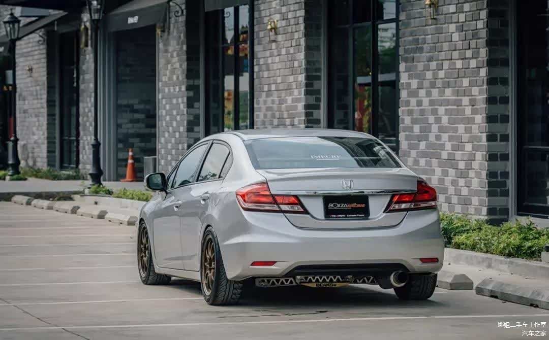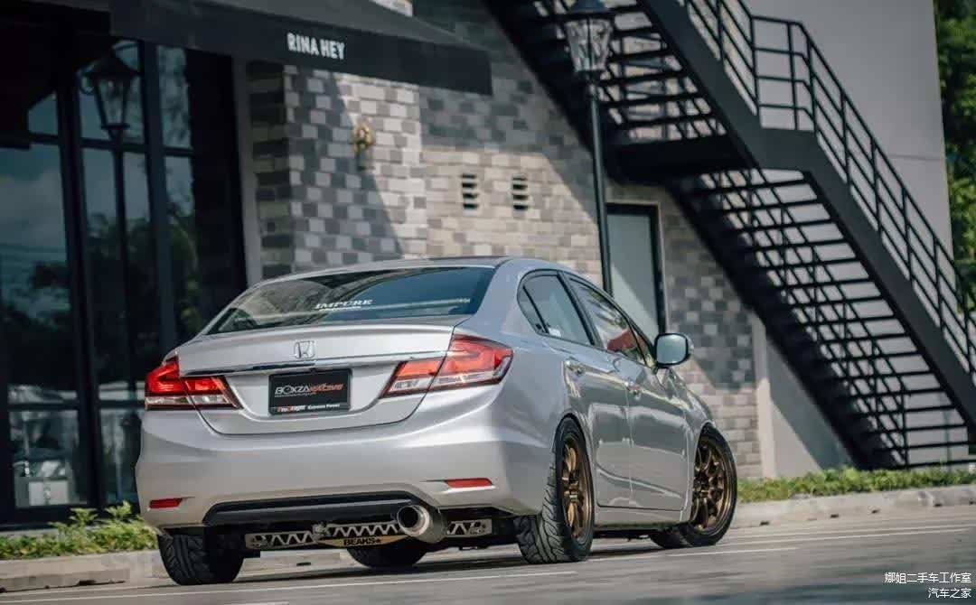 曾经也有见过非常夸张的9代思域姿态改装案例,吸睛是固然的,但那种玩法太极端,其实简单地更换一套运动避震,运动轮圈,稍微带点性能范的走街风格改装也是挺适合9代思域的。