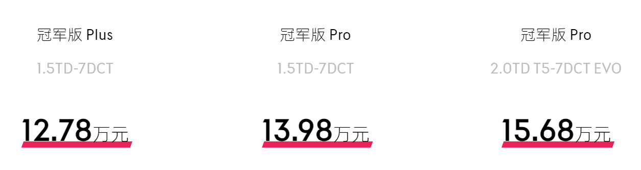 冠军版总共就这三款车。综合来看,增的配置似乎更值一些,看来厂商这一系列操作是听取了用户声音。对于预算10多万想要买燃油车的人来说,有一定吸引力。