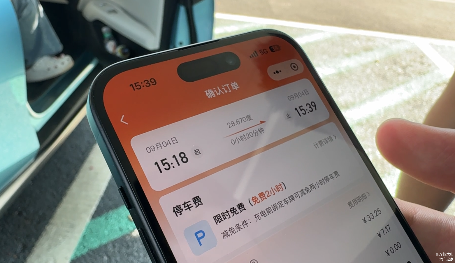 随后,我们找了个第三方的快充桩测试它的充电速度,开始充电的时候,电池剩余电量为7%,充了20分钟,电量来到了80%,其中30%到80%这一段的时间是13分钟,跟官方标注的时间是一样的。值得一提的是,充电桩位于户外,充电时的户外温度为43℃。