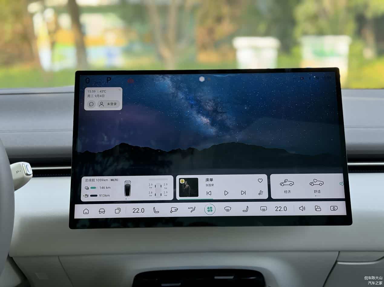 在试驾的过程中,我们进行了一场节油挑战,在电池电量剩余16%的时候开始测试,测试的标准是先将油箱加满,然后将整车的所有高能耗的设备关闭或者调至最低,全程没有使用空调,在乘坐3个人的情况下,绕着重庆城区道路行驶了59.8km,由于测试的时间并非早晚高峰,所以全程都是畅通状态,只有遇到红绿灯的时候才会停下来,其中,由于上坡下坡路段较多,对能耗提出了挑战。我们在测试的全程尽可能保持在它的最高效区间,也就是车速在50km/h到60km/h之间,最终,在跑完全程之后,电池电量剩余13%,加注的油量为0.64L。这个油耗虽然对日常驾驶没什么参考意义,但足以说明,这套动力在省油方面确实有两把刷子。