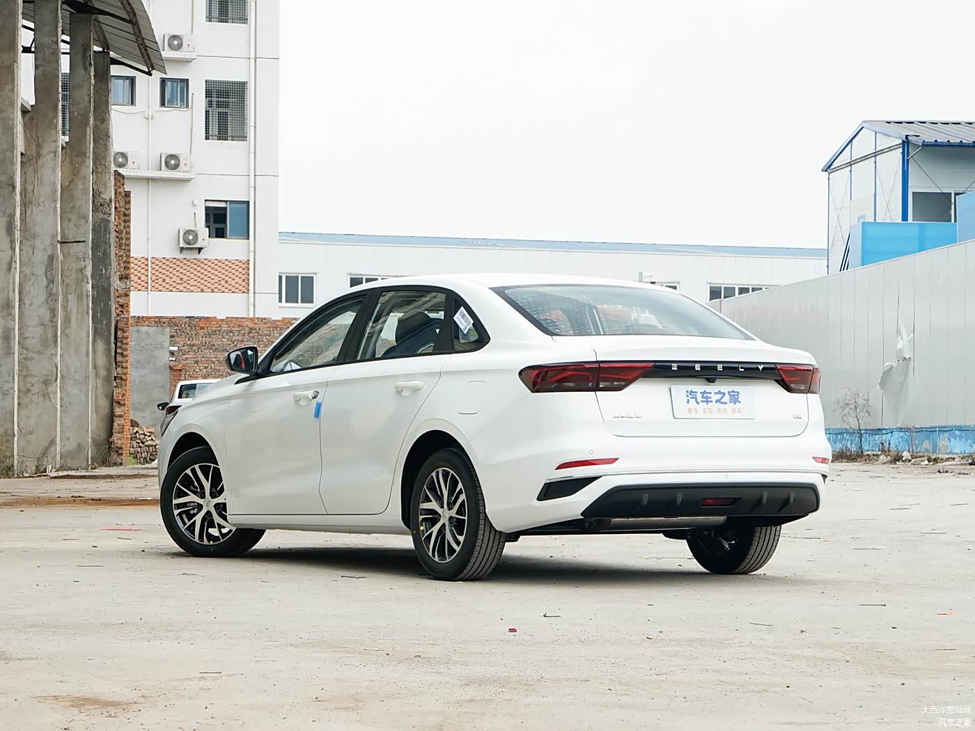 来到车尾部分,吉利帝豪采用了贯穿式尾灯设计,主光源呈旋转楼梯状,视觉效果深邃。尾灯下方的黑色饰条镶嵌着吉利的英文标识。上翘的鸭尾设计为整车增添了几分动感。后保险杠也采用了贯穿式饰条装饰,横向线条拉长了车尾的视觉宽度,下护板则设计成扩散器形状,进一步增强了车辆的运动氛围。
