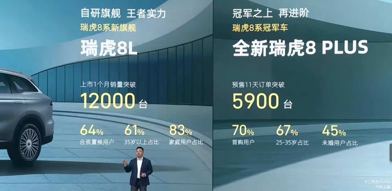 全球上市发布会,全新瑞虎8PLUS而发布会上,奇瑞公布了瑞虎8 PLUS 11天的预售订单:5900辆,同样非常强势。