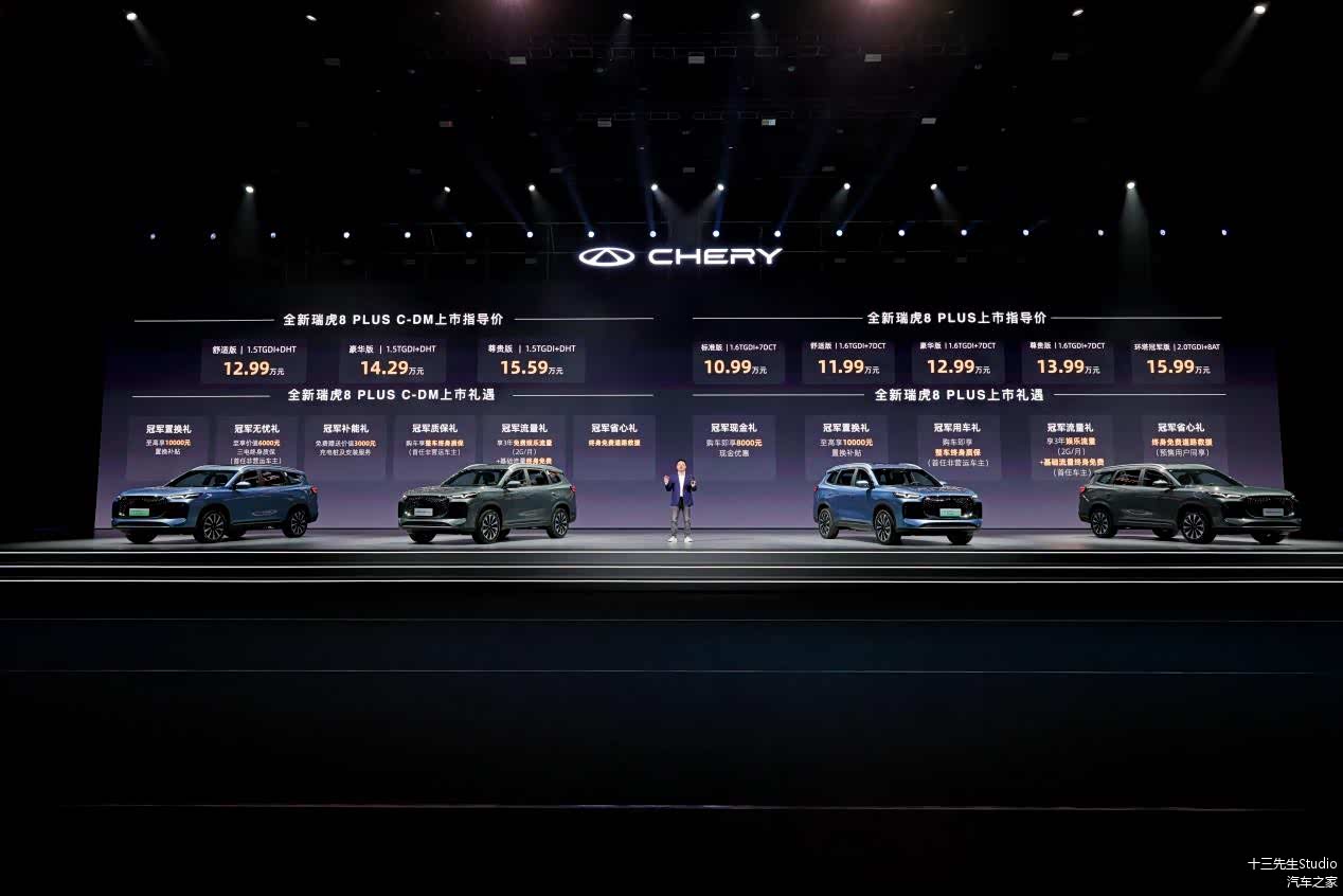 全新的瑞虎8 PLUS同步推出了燃油版及C-DM插混版车型,10.99万元-15.99万元,
