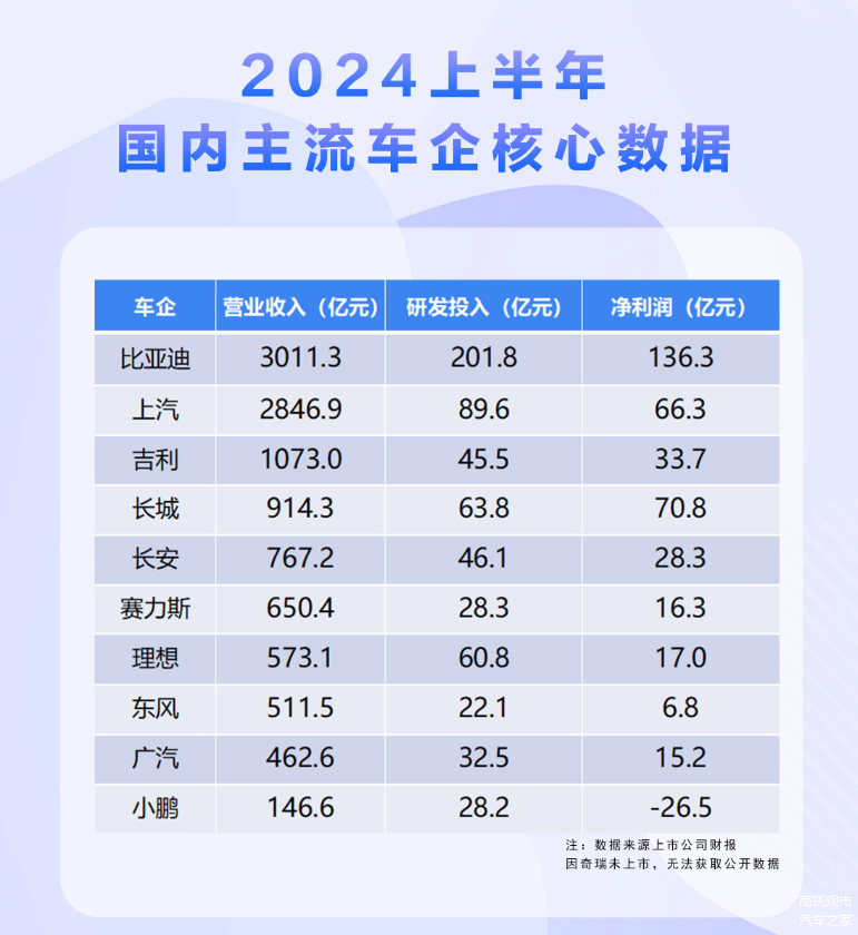 与此同时,比亚迪也公布了上半年的财报。依然是一份很难挑剔的成绩单,上半年营业收入3011.27亿元,超过了营收长期霸占第一名的上汽集团。净利润为136.31亿元,同比增长了24.44%。确实也有“不那么好”的部分,比亚迪的单车营收同比下降了14.92%,变成了14.15万元,也就是说比亚迪越卖越便宜了,相信这个大家也能感觉到。