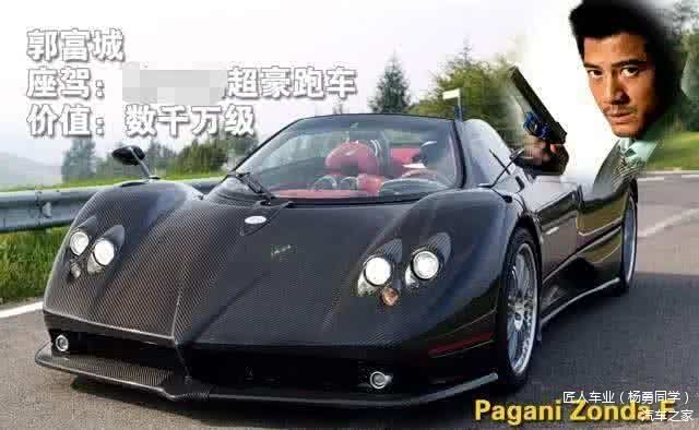 郭富城这辆超级跑车是 帕加尼Zonda(图片 | 参数 | 询价) F,因为老款车型停产,这款车型在市面上屈指可数。郭富城对这辆帕加尼跑车宠爱有加,还专门花费上百万购买了一块车牌KING。这个英文字母翻译成中文是王的意思,郭富城对自己的跑车非常自信,才会挂上一块个性十足的车牌。在郭富城看来,自己的跑车及速度与激情为一体,就是车中帝王。