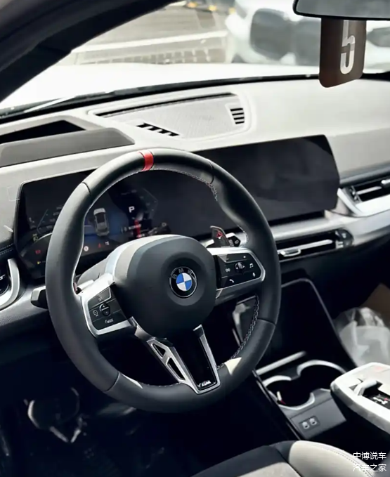 进入车内,宝马X1 M35Li的内饰布局与普通版国产X1保持一致,采用了10.25英寸+10.7英寸的大尺寸连屏设计,换挡区间也变成了断层样式,并搭载了最新的iDrive9车机系统。不过,作为M Power车型,新车还是配备了红色居中标识的M多功能真皮方向盘,以凸显其独特的身份属性。此外,车内的用料和做工也保持了宝马一贯的高水准。