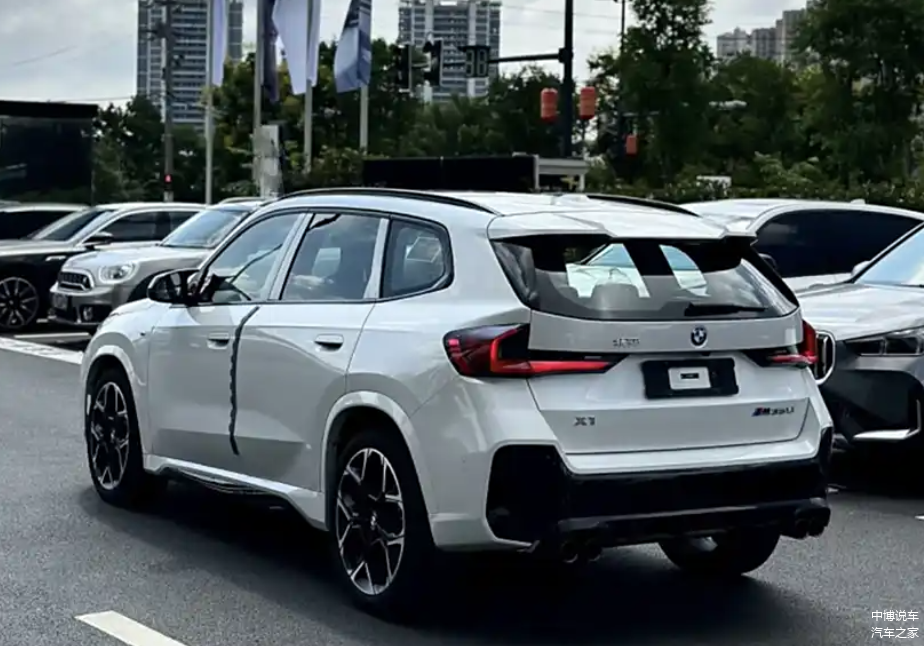 国产后的宝马X1 M35Li在外观设计上延续了海外原版车型的精髓,M套件的加持让其前脸更加凶悍。大尺寸的熏黑“双肾”格栅、多段式进气隔排气布局的前包围,以及运动化的细节设计,都让新车充满了战斗气息。车身侧面,M Power独有的牛角后视镜、大尺寸刹车卡钳和五角星样式轮毂,进一步彰显了其性能车的身份。车尾部分,双向扬起的高位扰流板、内置扩散器的超大尺寸熏黑后包围以及双边共四出的排气布局,将整车的性能风范推向了高潮。