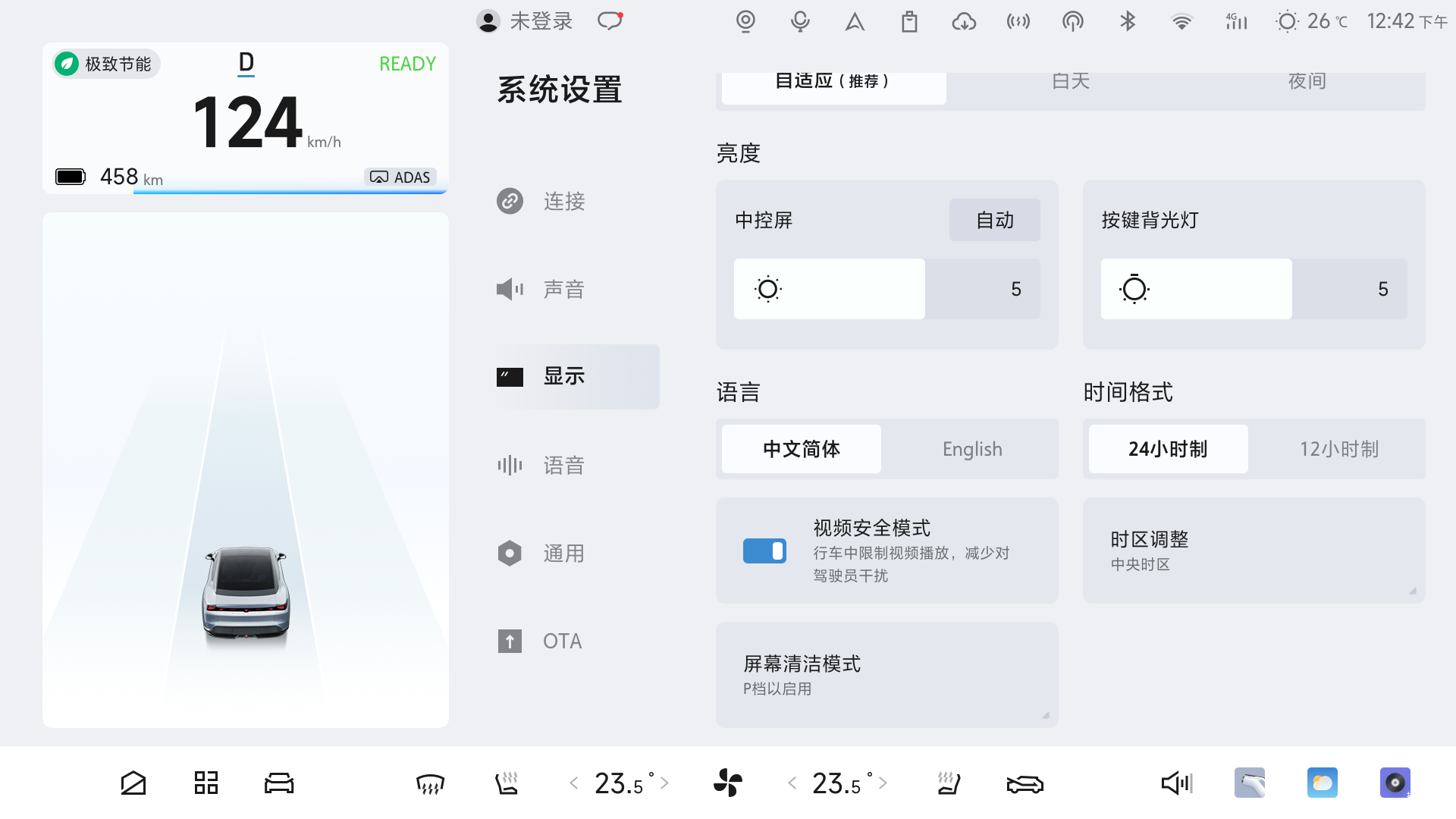 此外,新增“屏幕清洁模式”,能支持P挡状态下熄灭屏幕,避免清洁屏幕时误触,提升驾控安全;针对车机系统重启、私人交流充电桩、电池预加热和Hygge实验室页面显示也进行了优化,让操作更加便捷顺畅。