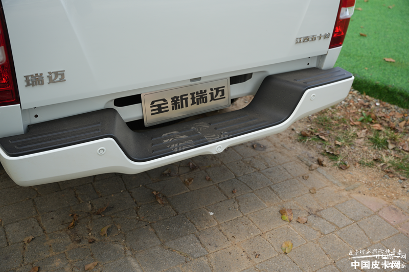 车身侧面与尾部承袭D-MAX的精髓,稳重大气。全新瑞迈8AT车型分为标轴和长轴两种车身尺寸,标轴车型轴距3095mm,车身长宽高为5330*1860*1785mm,货箱尺寸1480*1530*480mm。拍摄车型为长轴版,轴距3380,车身长5615mm,货箱达到1770mm,并且还有平底货箱车型,装载容量提升20%。