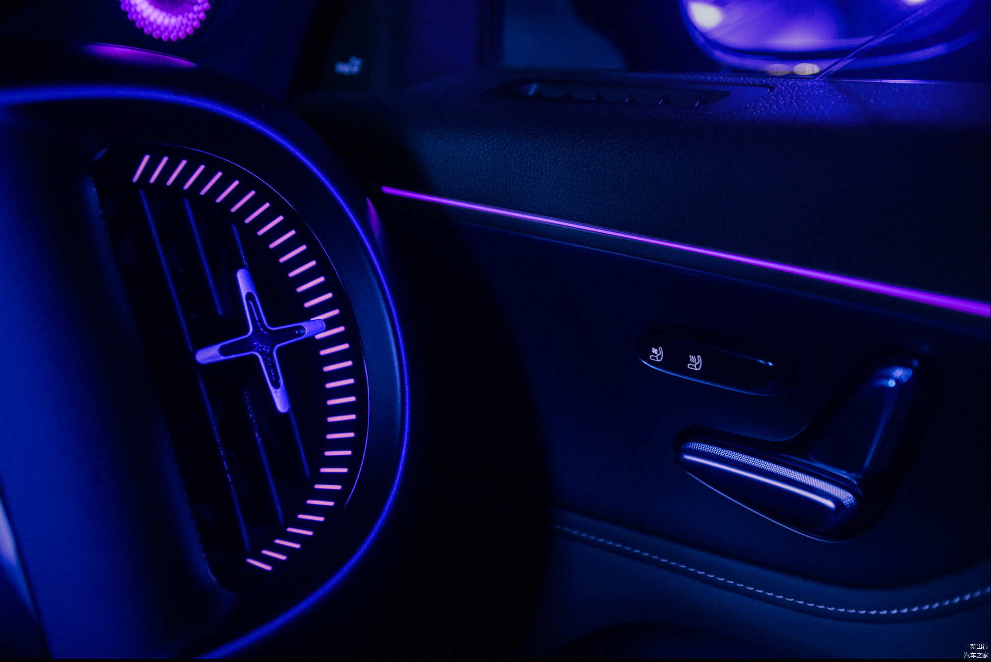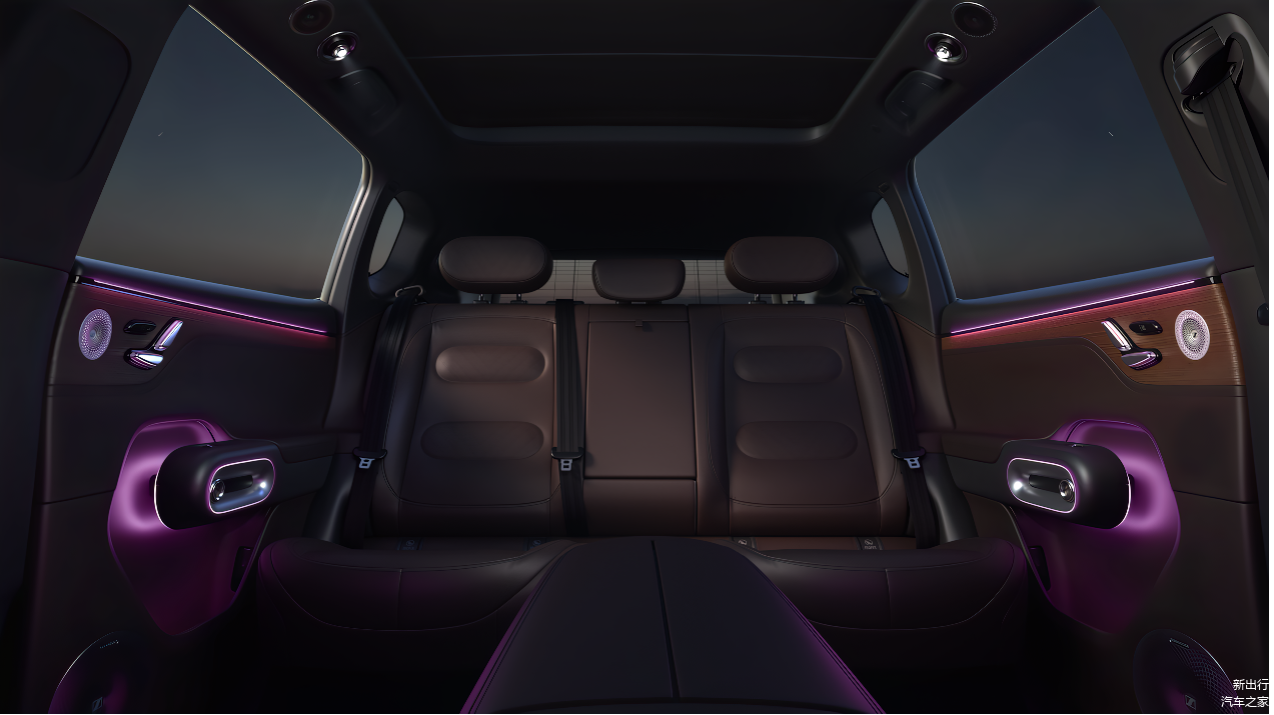 此外,新车还搭载了立体环绕式的 256 色氛围灯,可实现从上到下动态渐变渐消灯效,搭配上森海塞尔的音响系统,可以伴随着音乐实现不同的律动灯效。在疲惫时一键开启座舱、音响、灯光联动系统,打造更浪漫、独特的车内氛围。一家人自驾游的同时,还能沉浸式欣赏一场 “ 音乐会 ”