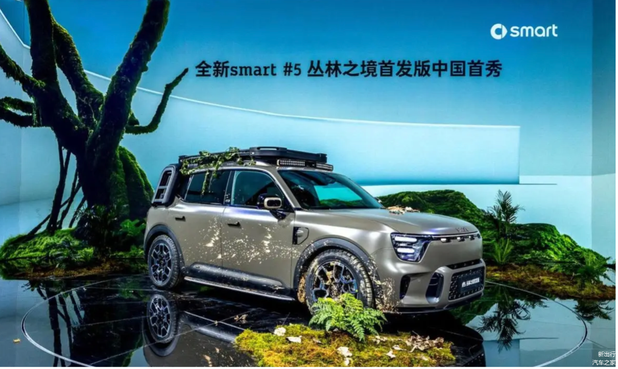 不过幸运的是,变少并不意味着没有。在 9 月初的成都车展上, smart 就为我们带来了全新物种 smart 精灵 #5 ——丛林之境首发版。