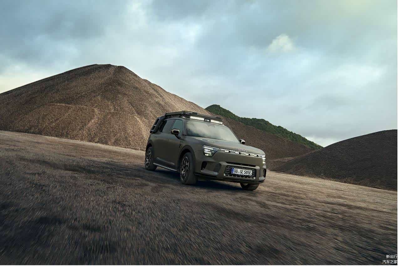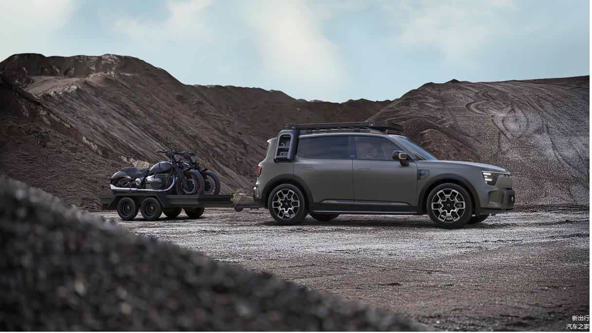在展出的丛林之境首发版上我们能看到,梅赛德斯 - 奔驰的设计团队还为 smart 精灵 #5 准备了一套户外奇旅的装备,包含便携音箱、车载投影仪、户外探照灯、车顶平台行李架(支持最大 240kg 静态承载)、探险灯、侧爬梯、侧踏板、底盘装甲和尾部小书包等。