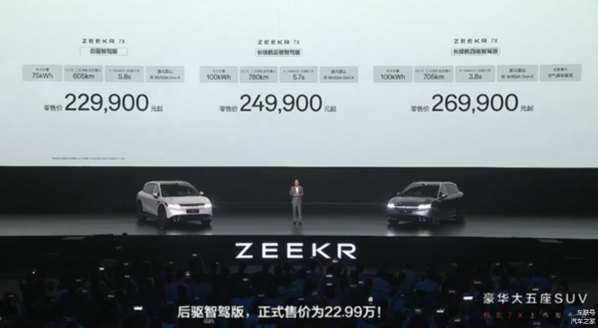 9月20日,极氪品牌旗下第五款车型 极氪7X(图片 | 参数 | 询价)正式上市,售价区间22.99-26.99万元。新车定位于纯电动中型SUV,这是一个竞争十分激烈的细分市场,那么这款车上市之后会有什么样的表现呢?