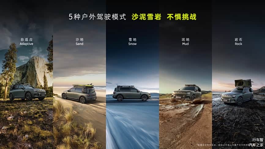 为助力用户探索各种地形,全新smart精灵#5提供了8种驾驶模式。Eco、Comfort、Sport 3种铺装路驾驶模式以及沙地、雪地、泥地、岩石、自适应5种户外驾驶模式,大幅拓展生活半径。500毫米最大涉水深度,和45°陡坡能力,能够陪伴smart密友,在山涧和沟壑中不断解锁新奇旅程。