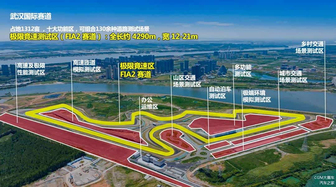 武汉智能网联汽车测试场地位于武汉市经济技术开发区,项目占地1312亩,是目前国内面积较大、功能全面、智能化较高的测试场。其中包含了10项特定场景测试区、四个测试实验室以及符合国际标准的专业赛道。