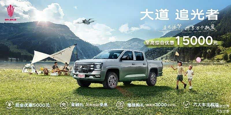 随着汽车市场的不断变化和用户需求的多元化发展,皮卡市场也迎来了新的机遇与挑战。江铃汽车作为行业内的引领者,率先推出以“全场景”为卖点的江铃大道追光者。这款皮卡车型凭借其强大的性能和丰富的科技配置,迅速吸引了众多消费者的关注,尤其是目前推出的至高综合优惠高达 15000 元,更是让人心动不已。