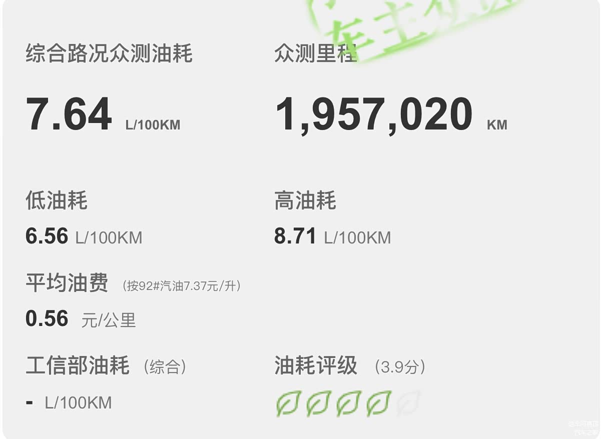 家用代步,天籁的燃油经济性确实不错,根据现有车主近200万公里的众测反馈,2.0自吸的天籁在综合路况下,实测百公里油耗为7.64升,加92号油,合每公里的燃油成本约5毛6。