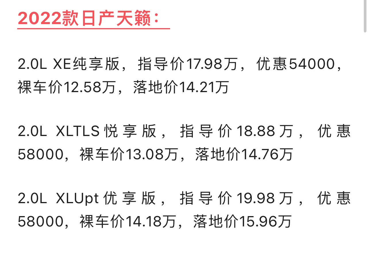 这个“真心版”天籁确实是有一点诚意的,只不过 诚意并不是不多!为什么这么说,咱来给你分析一波。“真心版”的天籁指导价17.98万,目前限时优惠12.78万。而之前2024款畅销的车型是指导价18.88万的悦享版,其实终端的优惠早已达到了5.8万,实际裸车价格也就13.08万。也就是说悦享版仅仅比这个真心版贵了3000块钱。