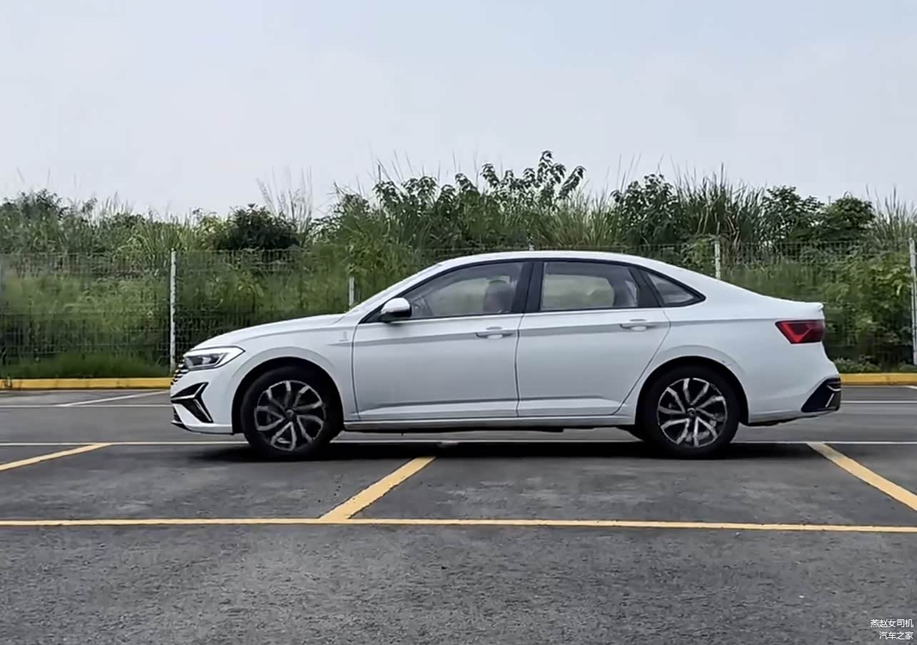 车身侧面造型与速腾基本保持一致,平直上扬的腰线勾勒修长、运动的姿态。作为参考,速腾的长宽高分别为4791/1801/1465mm,轴距2731mm,定位A+级轿车,而捷达VA7应该与之相差不大。不过细节将有所不同,例如捷达VA7车窗下沿饰条进行熏黑处理,并换装了全新造型轮毂。