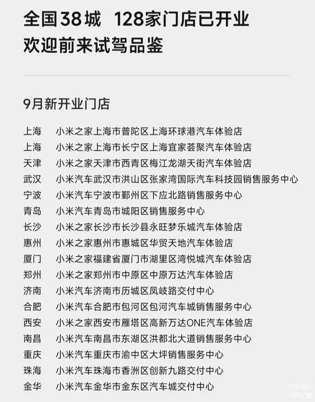 近期,小米汽车在市场布局上取得了显著进展。据最新报告显示,仅在9月份,小米汽车就新增了17家门店,遍布全国38个城市,使得总门店数量达到了128家。此外,小米汽车还计划在10月份再新增11家门店,进一步扩大其销售和服务网络。