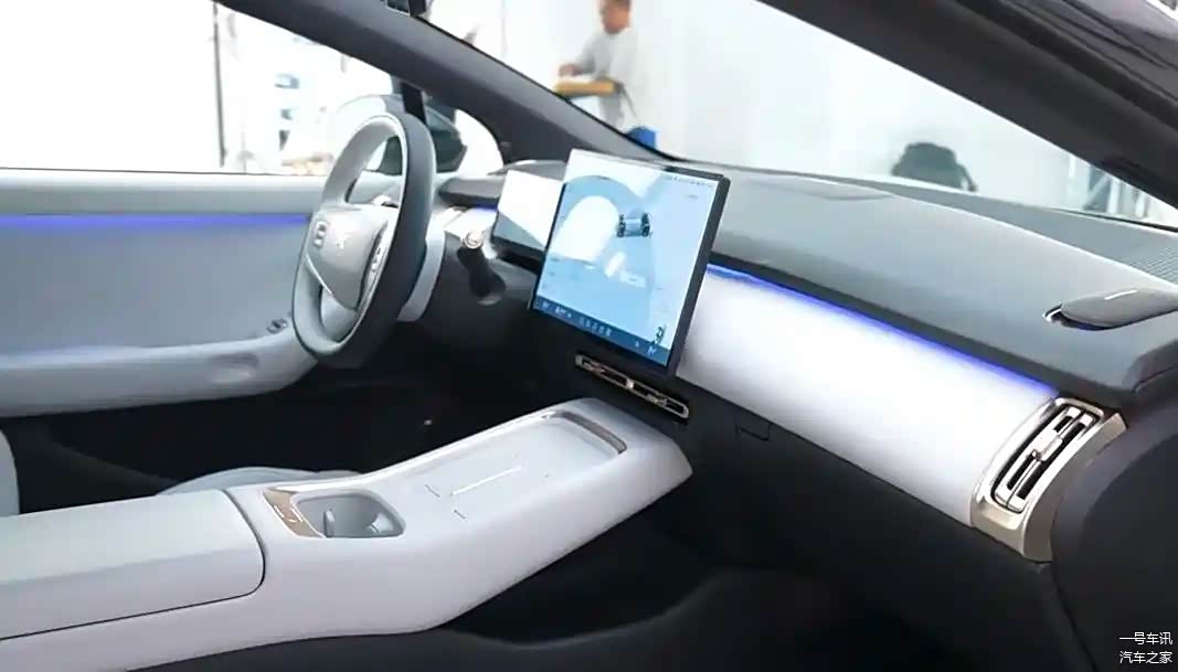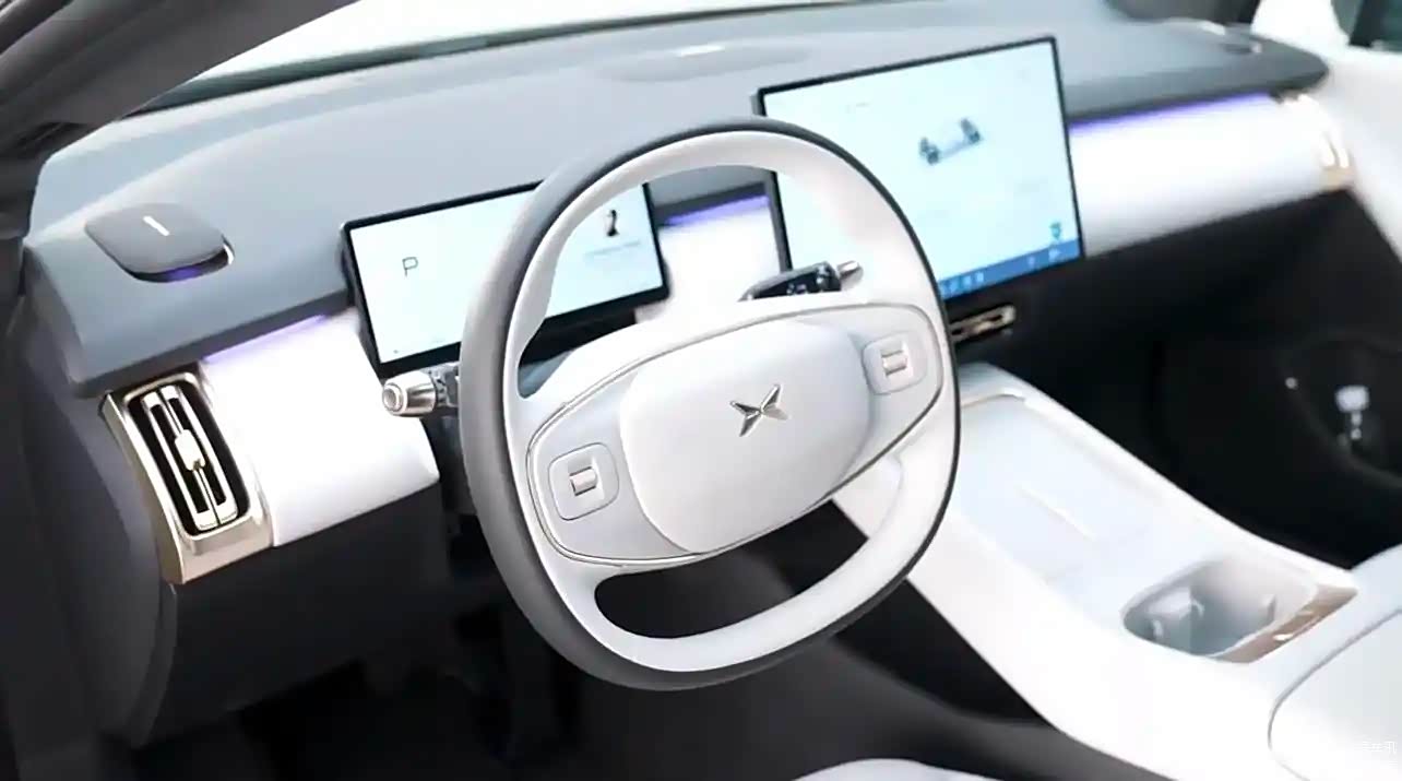 在内部装饰上,新车的中控台设计相当平整,装饰用了各种不同的材料和色彩来铺展,既展现了车的层次结构,同时也维持了一种豪华的风格。新车在营造出一种浓厚的氛围方面,中控台和中控台之间的连接处嵌入了隐蔽的氛围灯,并将其延伸到门板的两侧,从而在夜间驾车时为乘客提供了令人眼花缭乱的驾驶体验。新车在多媒体方面的特点是:悬浮式中控显示屏与全液晶仪表的完美结合。在主驾和副驾的前方,还特别配备了两台对称且可升降的著名音响。方向盘、中央通道的设计风格与小鹏G6等其他车型几乎一模一样,这都带有浓厚的家族风味。